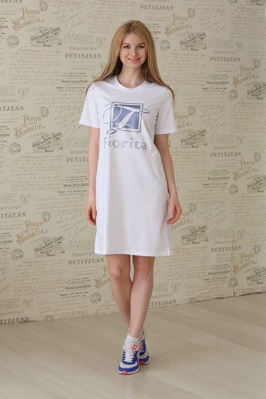 Фото товара 8147, платье-футболка из 100% хлопка белая