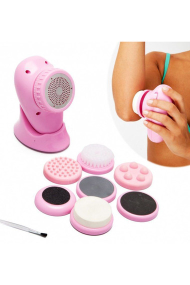 Особенности изделия: Работает от 4 батареек типа АА. Вес: 455 г. Габариты: 130*70*75 мм. Материал: пластик, силикон, металл. Цвет: розовый. Комплектация: корпус аппарата, подставка, насадка с контейнером для удаления ороговевших частичек, крупнозернистая насадка для шлифовки кожи ступней, 5 сменных крупнозернистых самоклеящихся листов для шлифования кожи ступней, среднезернистая насадка для шлифовки кожи ступней, 6 сменных среднезернистых самоклеящихся листов для шлифования кожи ступней, мелкозернистая насадка для шлифовки кожи ступней, 6 сменных мелкозернистых самоклеящихся листов для шлифования кожи ступней, массажная насадка с крупными бугорками, массажная насадка с мелкими бугорками, насадка со щеткой для тщательного очищения кожи, насадка-спонж, пилочка для ногтей рук, пилочка для ногтей ног, щёточка для очистки насадок, инструкция по эксплуатации.